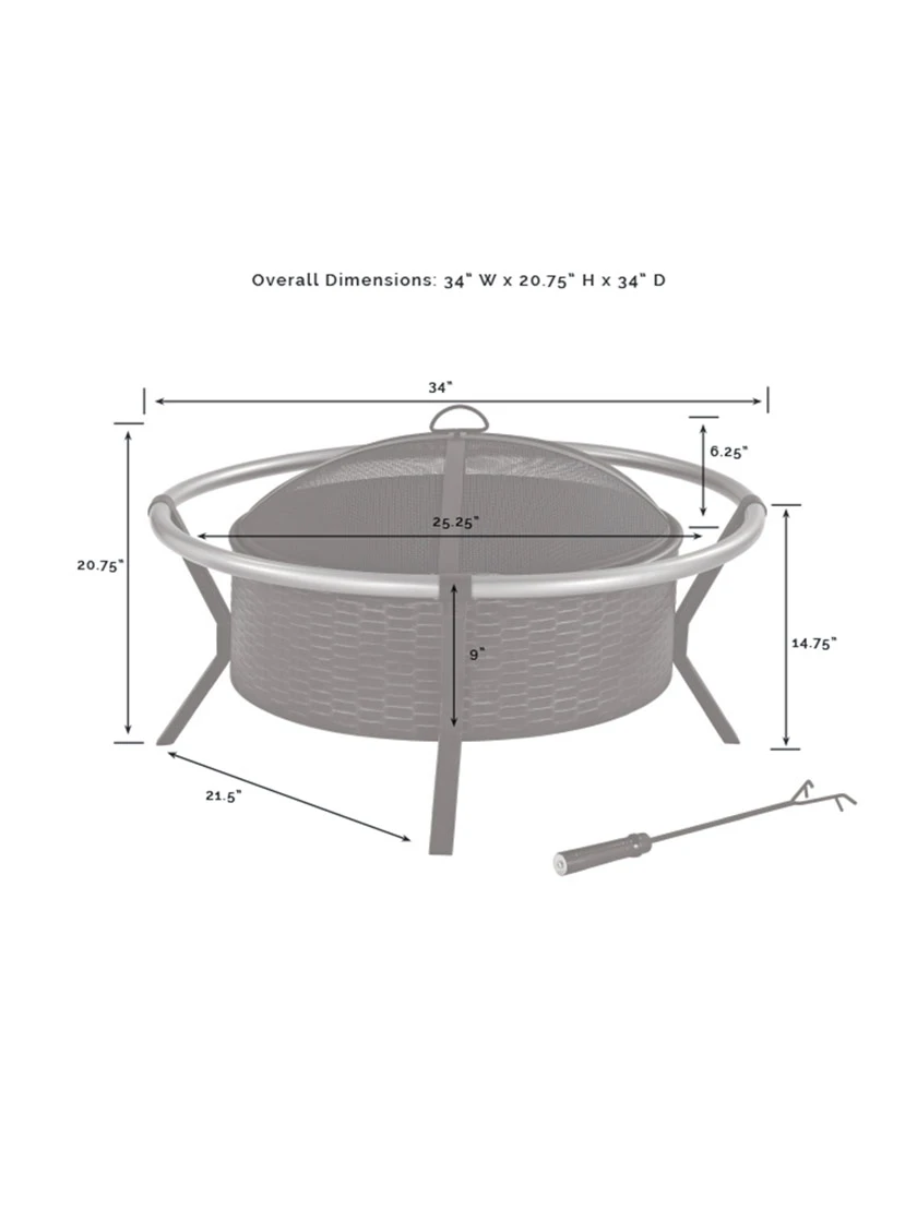 Add a unique flair to your outdoor gatherings with the Yuma Fire Pit. Constructed of durable, weather-resistant steel, the Yuma features a deep bowl designed for a warm, long-lasting fire. The included mesh cover will keep sparks at bay, while the steel poker keeps your fire stoked and doubles as a screen lift. Finished with a decorative copper-finished steel ring, this fire pit bowl will be the centerpiece of your backyard memories for years to come.