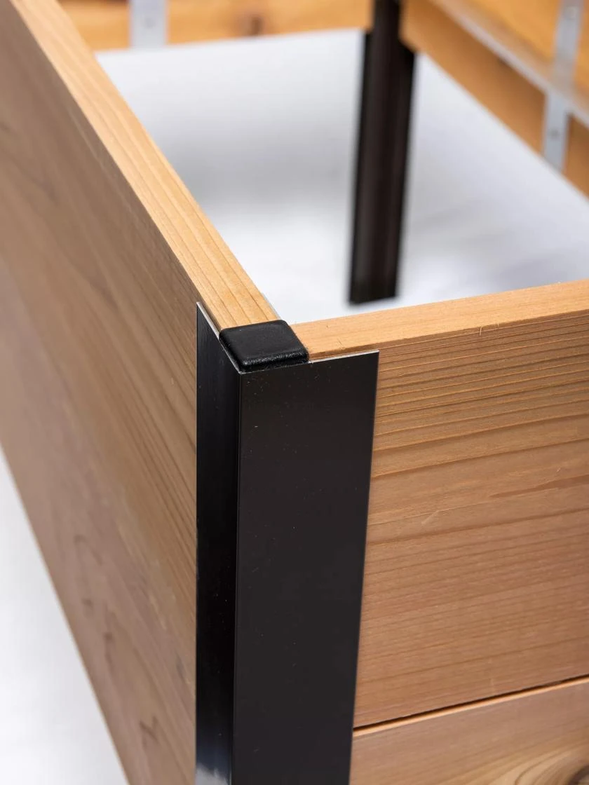 - Made from naturally rot-resistant wood with rustproof aluminum corners