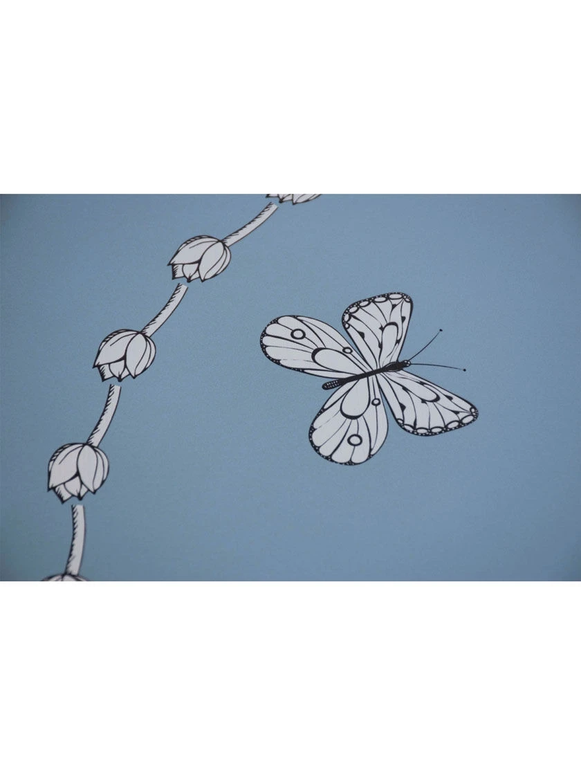 Perfect for any patio or deck. White butterflies with a stylized flower border on a blue field compliments any décor. Made of a durable, powder-coated steel, holds up great in salt & chlorinated environments.