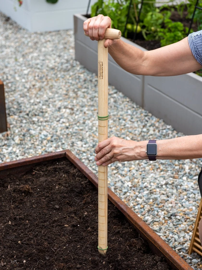 30″ Hardwood Dibber Makes Planting and Spacing Wicked Easy